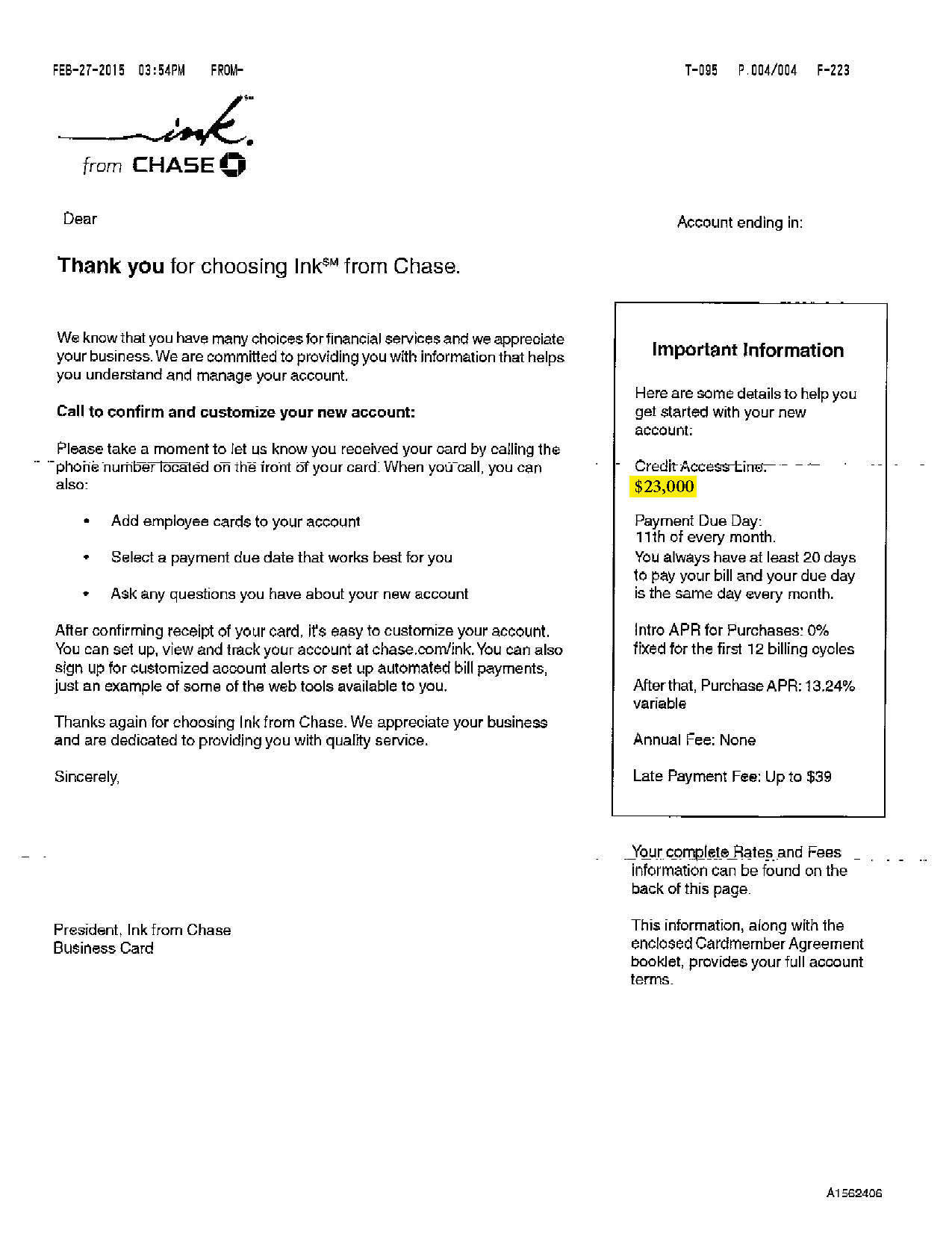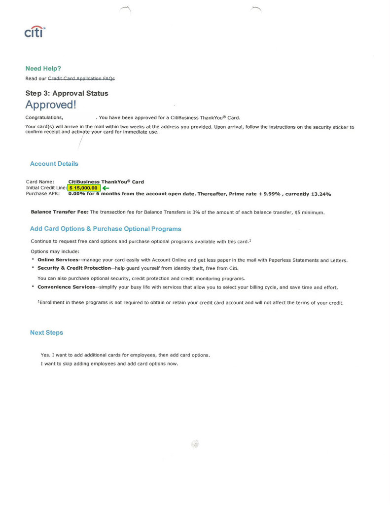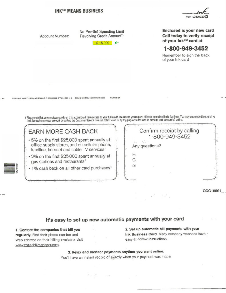 $15,000 INK CLASSIC BUSINESS APPROVAL
