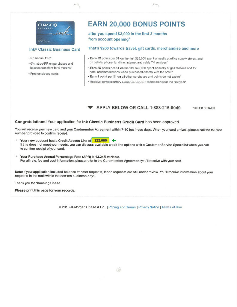 $23,000 INK CLASSIC BUSINESS APPROVAL
