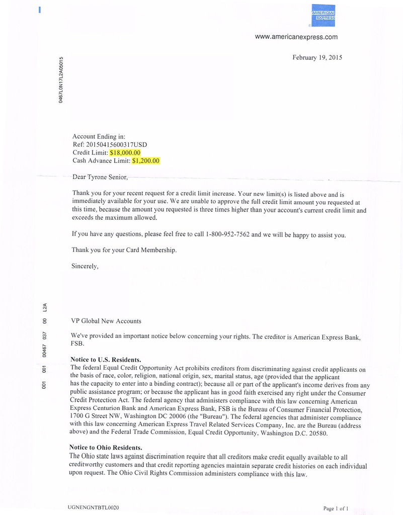 $15,000 AMERICAN EXPRESS BANK APPROVAL