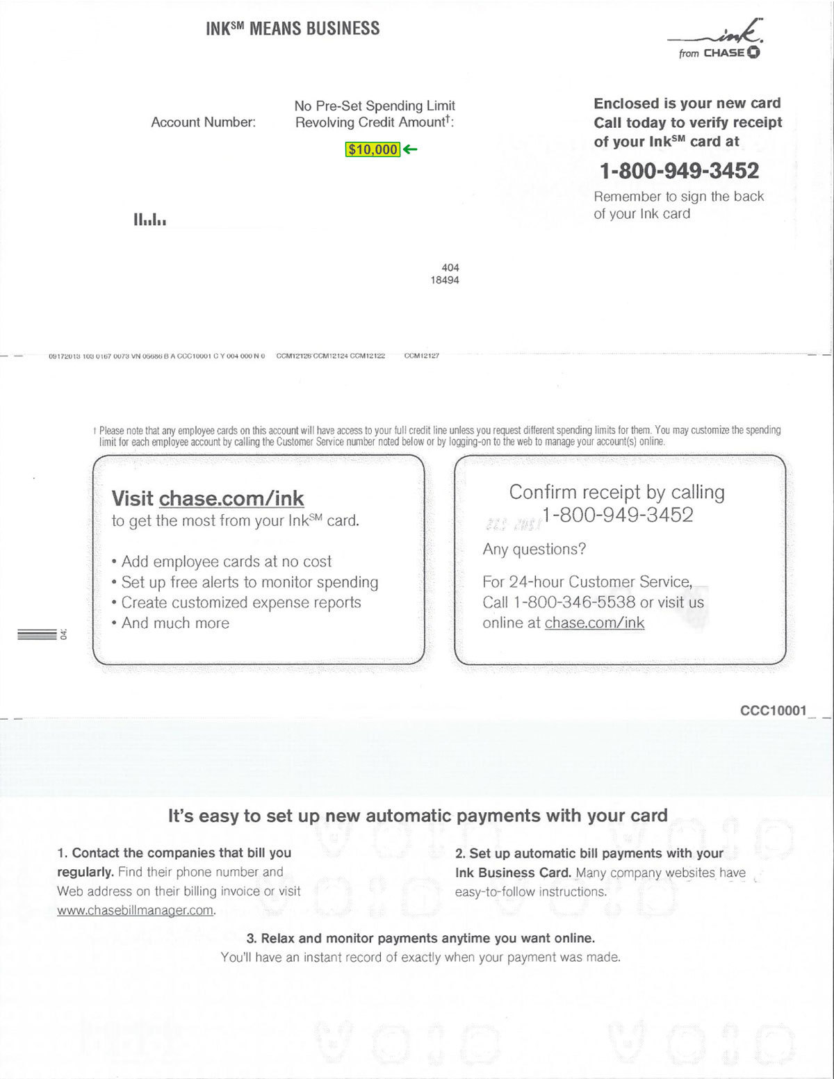 $17,000 INK CLASSIC BUSINESS APPROVAL