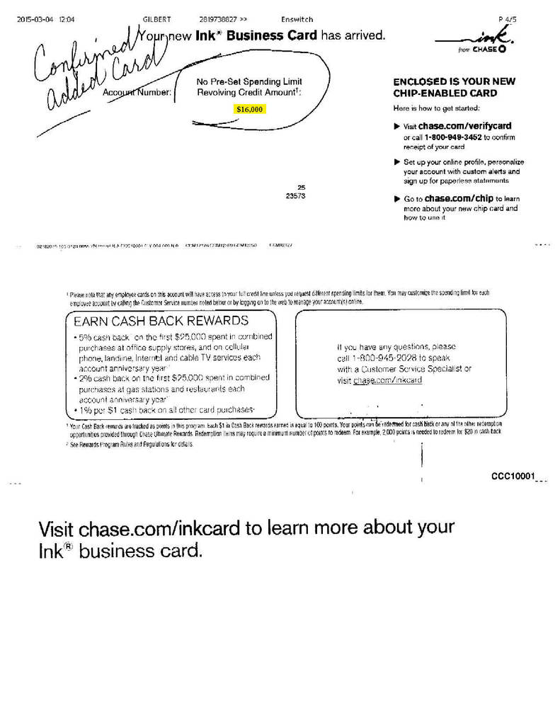 $16,000 INK CLASSIC BUSINESS APPROVAL